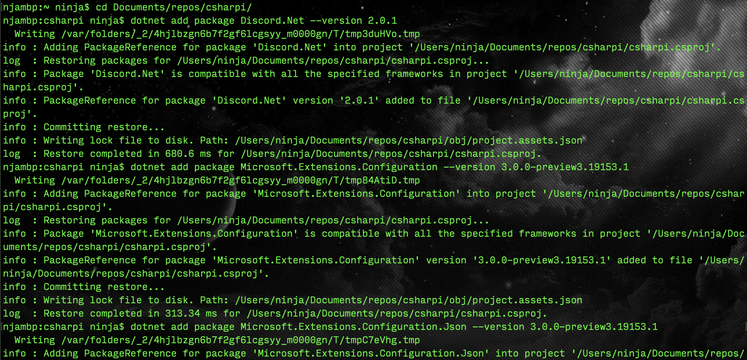 Now it is time to add required packages to our project. We will need to add the Discord.Net package, and a couple Microsoft configuration packages to help us read and store the configuration file.