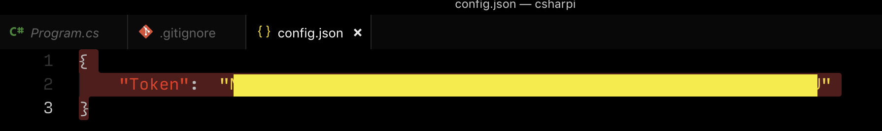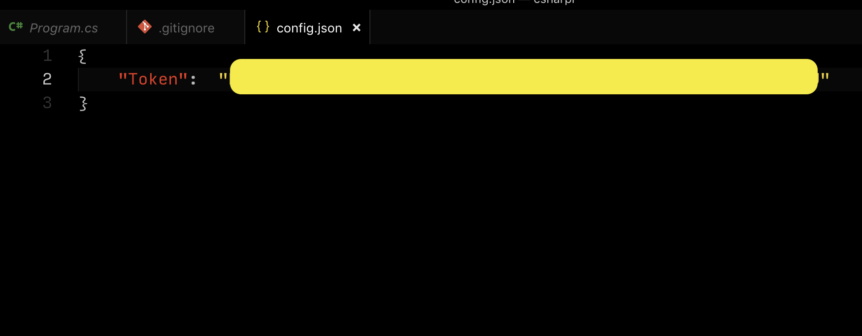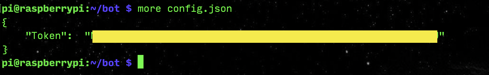 7. Copy the token and drop it inbetween the quotes in the config.json file.