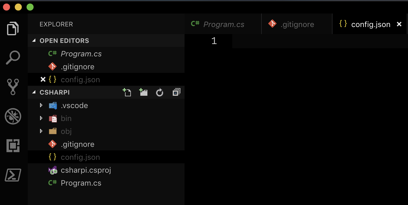 1. Open the csharpi folder in Visual Studio Code on your local machine.