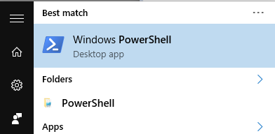 Type in 'PowerShell', and select 'Windows PowerShell'