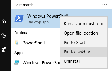 I recommend pinning PowerShell to your taskbar as well. This makes it really easy to launch.