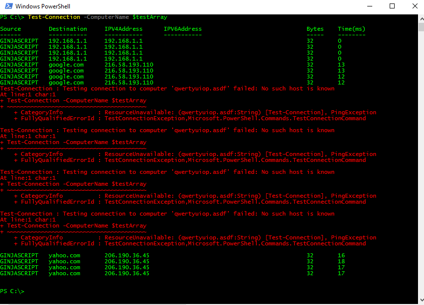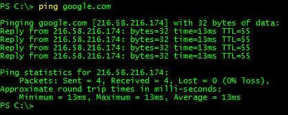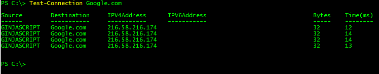 Alright, pretty standard! Let's see what Test-Connection Google.com does.
