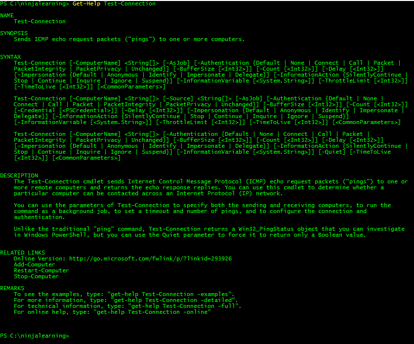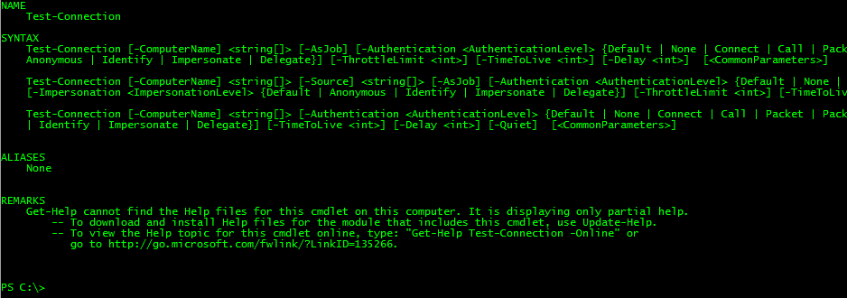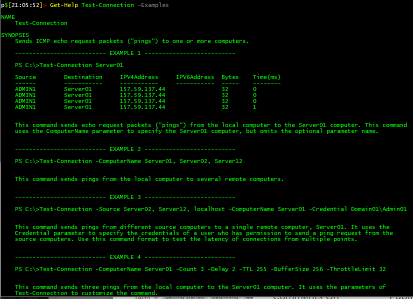 Now that looks a little bit different. So what's so special about Test-Connection? To see what else Test-Connection can do and the options it provides, use: