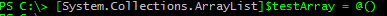 [System.Collections.ArrayList]$testArray = @()This above code will create an empty array in the variable $testArray. Think of a variable as a container of objects.