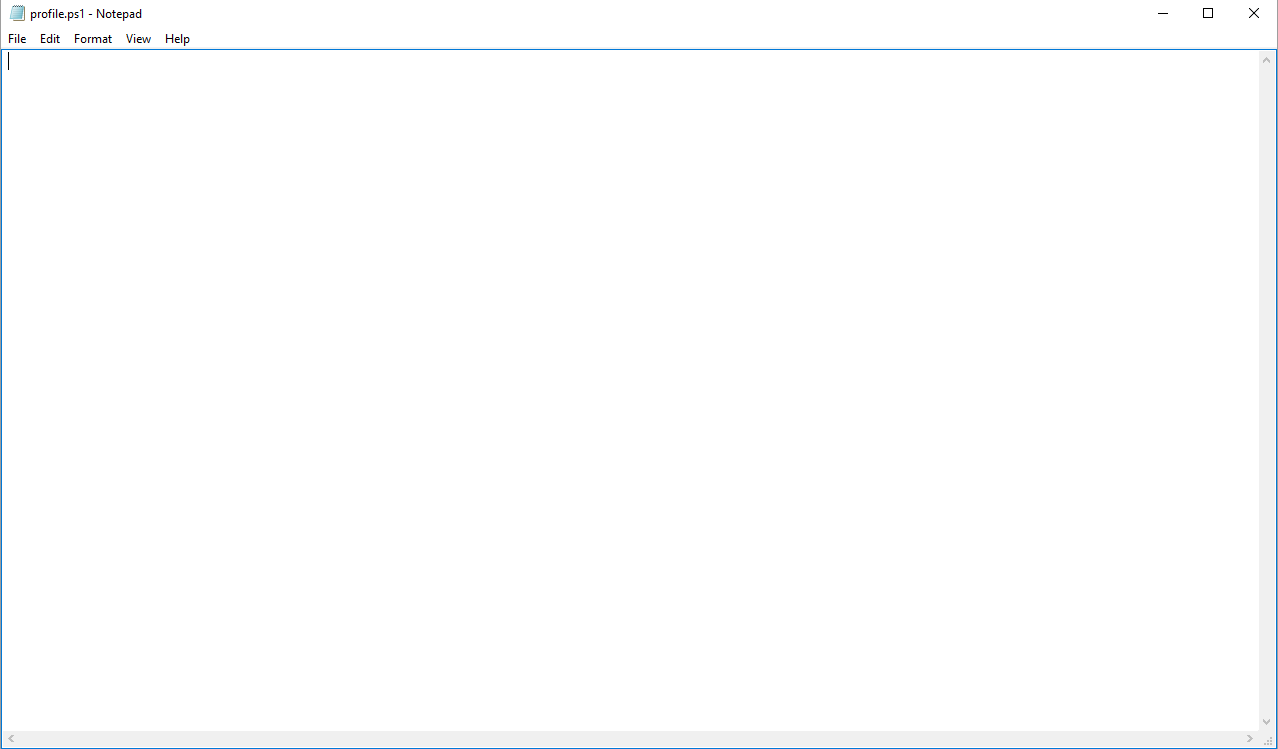 Start-Process $profile.CurrentUserAllHostsYou should now have a blank text file open with profile.ps1 as the name in the upper left.