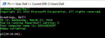 Write-Host "Greetings, $curUser!" -foregroundColor $foregroundColor