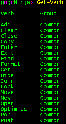 You can use the Get-Verb command to see a list of verbs that PowerShell uses and are officially approved. This can be handy when you're creating your own functions so you can use an approved verb that fits.