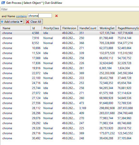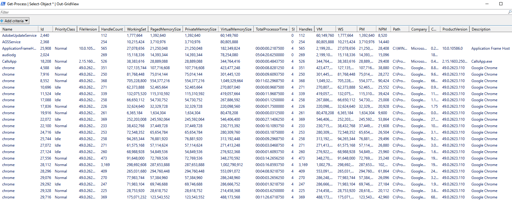 Another way to output this information is to use Out-GridView. This can be a great way to get a visual of the returned items.