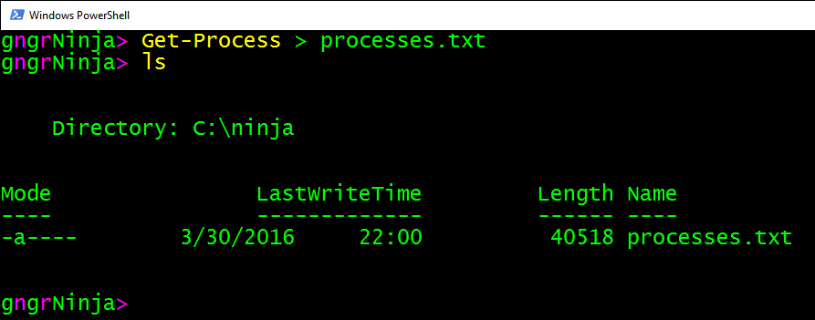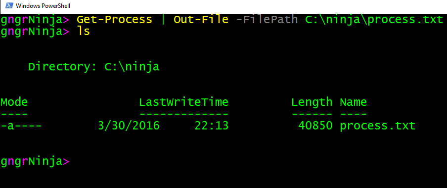 Get-Process | Out-File -FilePath C:\ninja\process.txt