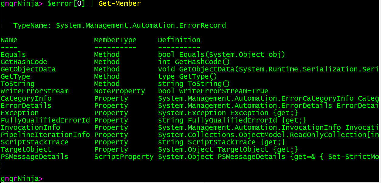 $error[0] | Get-Member