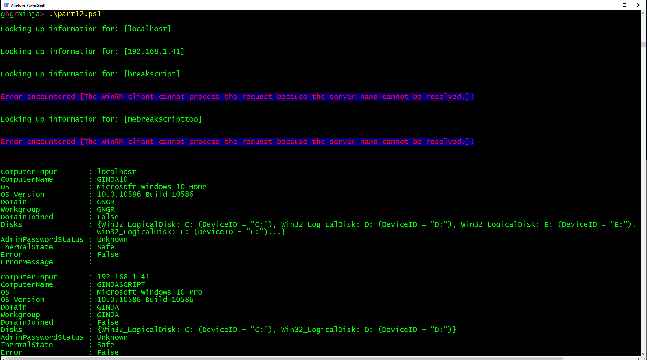 Here are the results from running part12.ps1 in the console:
