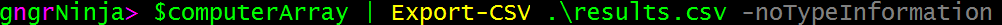 $computerArray | Export-CSV .\results.csv -noTypeInformation