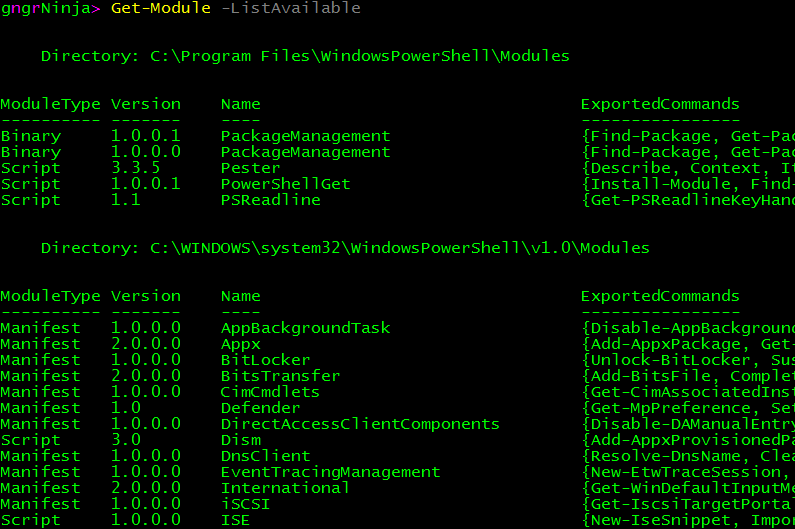 In PowerShell, you can see what modules are available to you by using the following command: