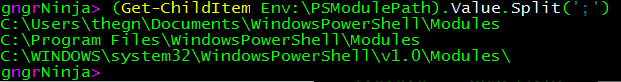 (Get-ChildItem Env:\PSModulePath).Value.Split(';')