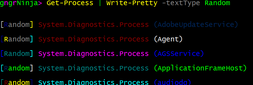 Get-Process | Write-Pretty -textType Random