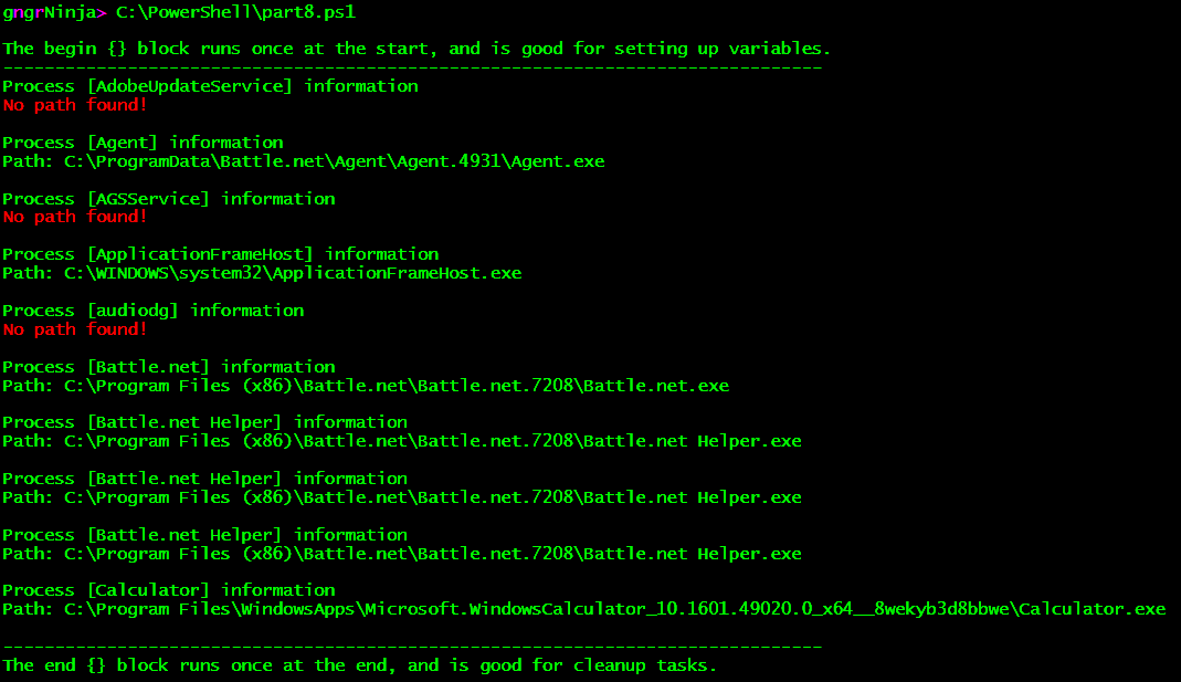 Go ahead and save it to C:\PowerShell\part8.ps1, and run the code.