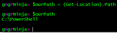 Now that we're inside of the part9 folder, we can use the following command to store the path in the $ourPath variable.