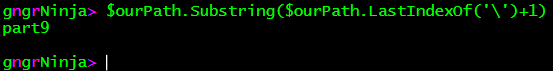Now that we have our string stored in $ourPath, we can start manipulating it. I will be using the SubString and LastIndexOf methods.