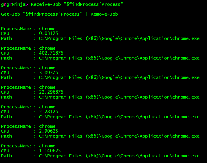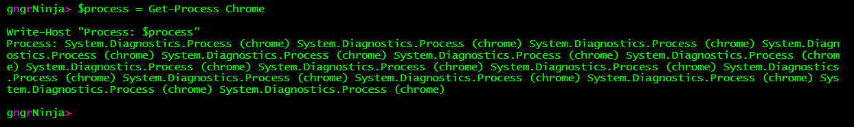 Let's take a look at another example, this time using Get-Process, looking for Chrome.