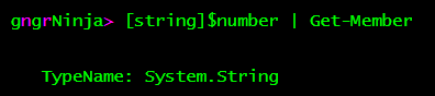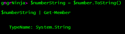 As expected, the object type for $number is Int32. Let's try converting that to a string via ToString.