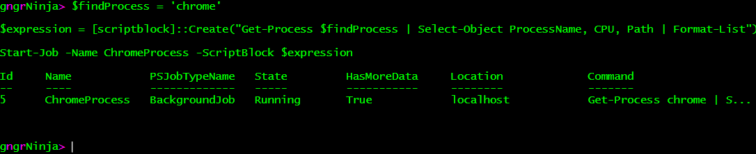 Then we'll use the command Start-Job to start a PowerShell job, and run that command.
