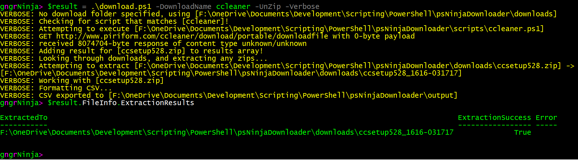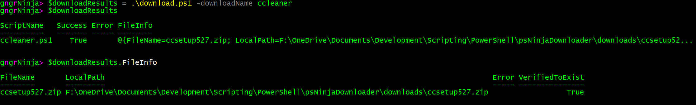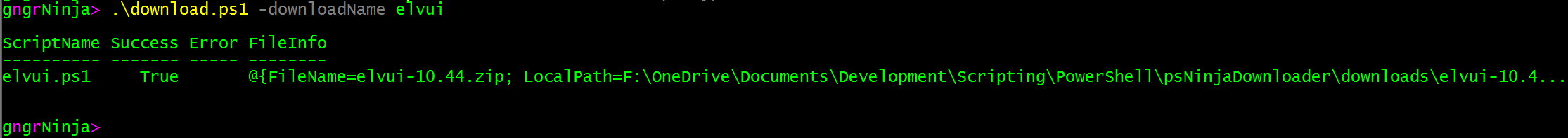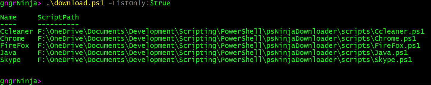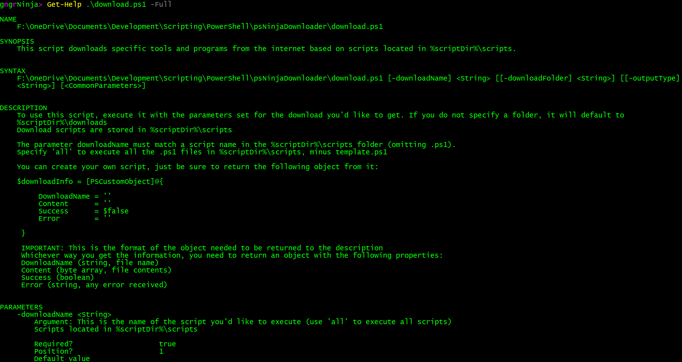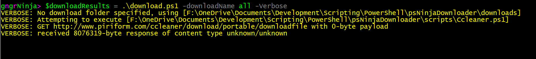 Ninja Downloader works by executing the main script (download.ps1), which takes the following parameters: