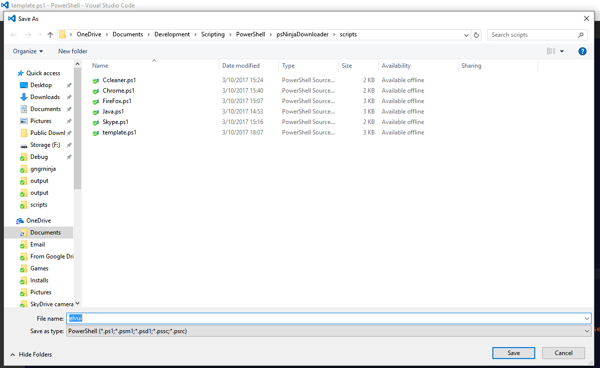 First, I'll save the template as elvui.ps1