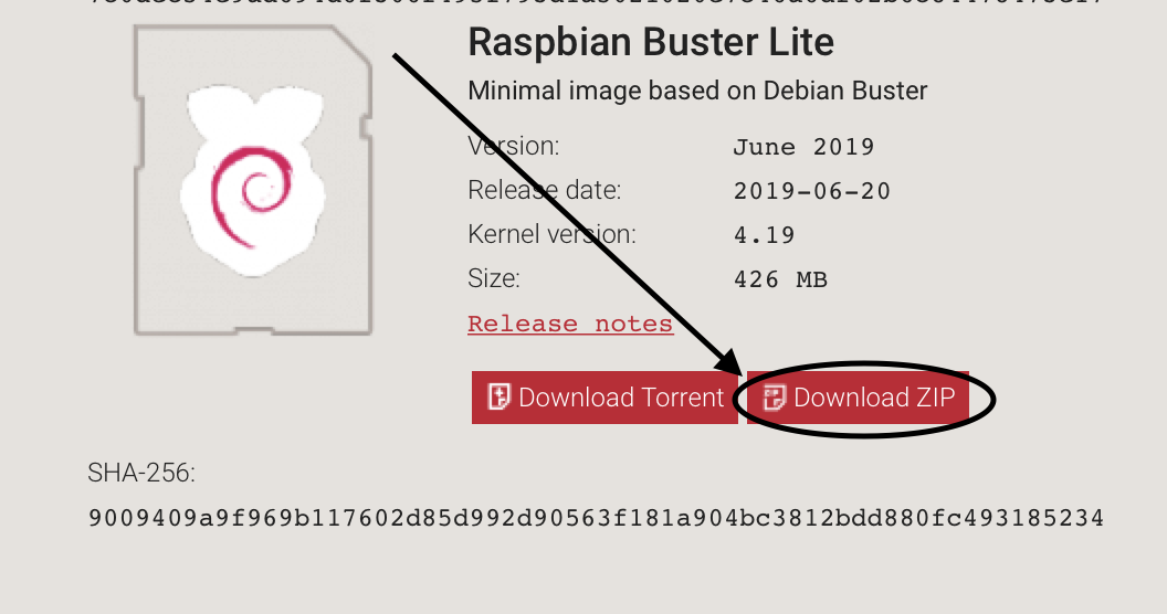 1. Head on over to https://www.raspberrypi.org/downloads/raspbian/, and download the latest image. For this example I will be downloading the ZIP compressed image for Raspbian Buster Lite.