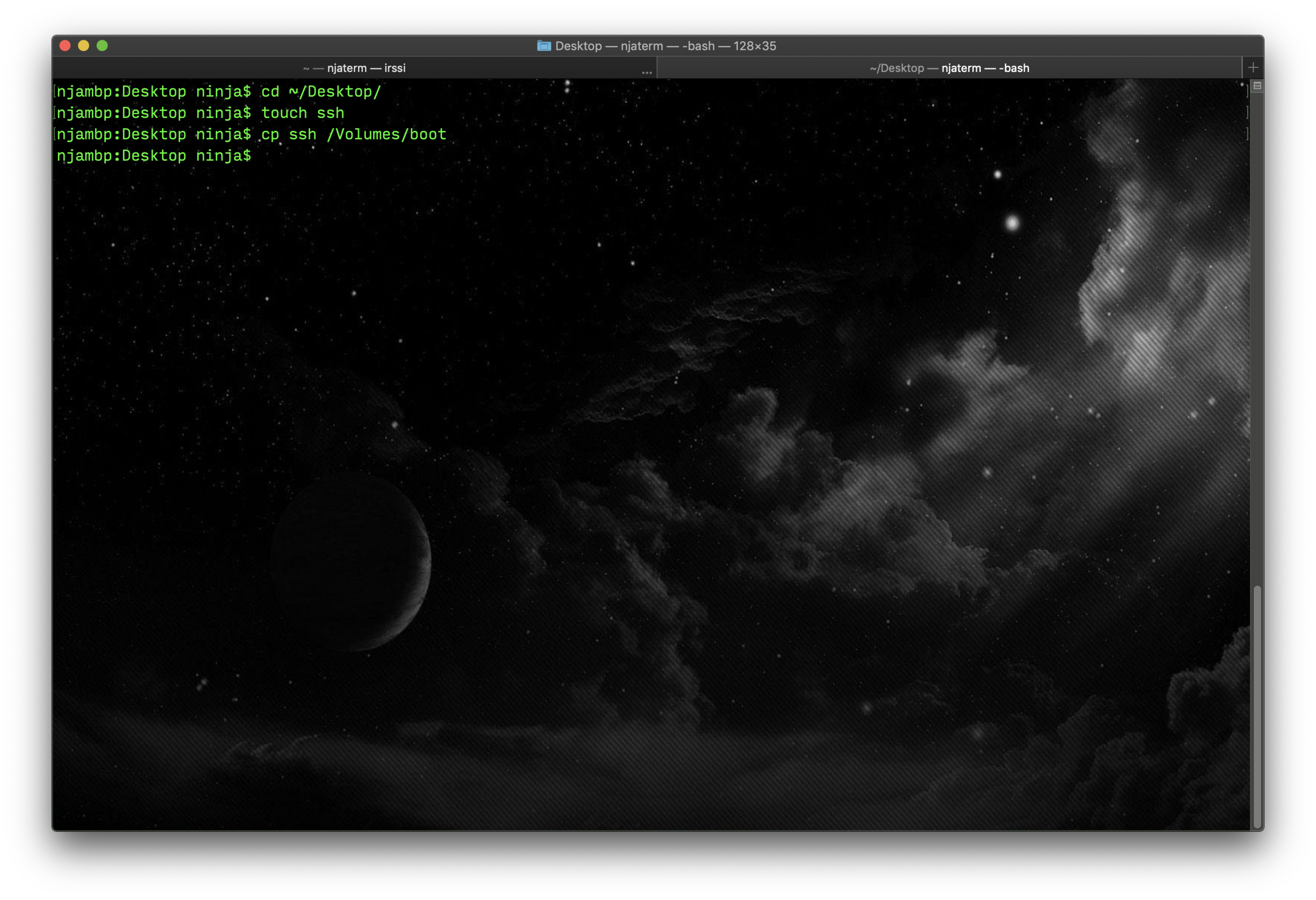cd ~/Desktop/ touch ssh cp ssh /Volumes/boot