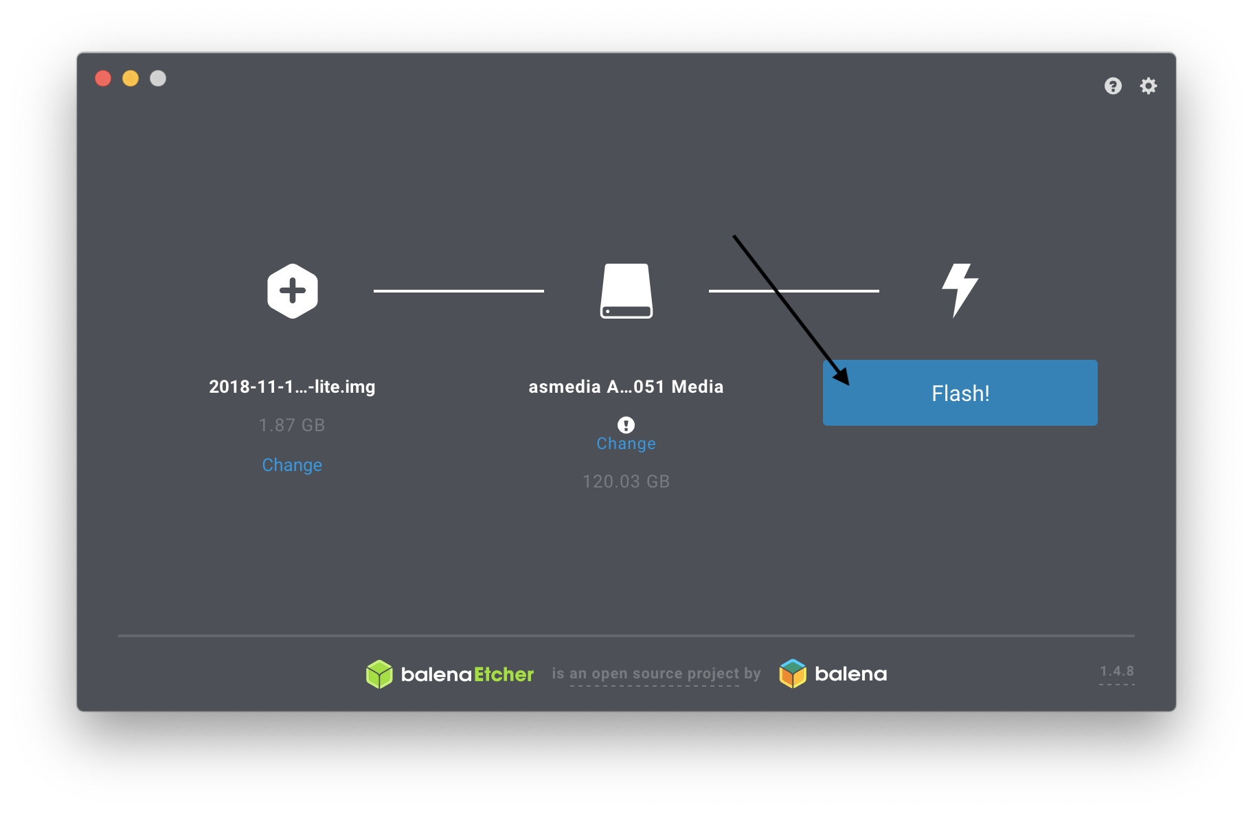 3. Open Etcher, or whichever app you picked to write the image to the card/drive.