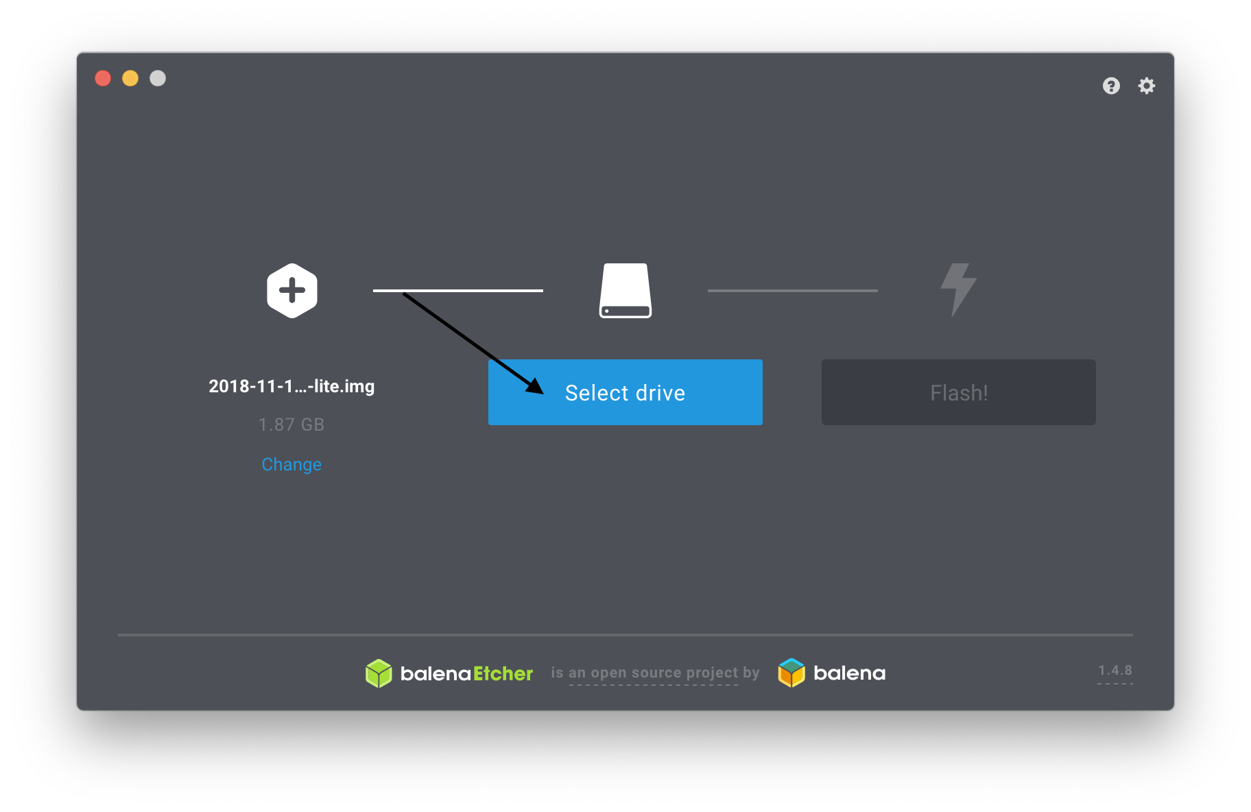 5. In Etcher, select “Select image“.