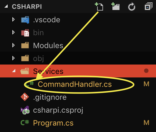 Create a folder named Services, and under that folder a file named CommandHandler.cs.