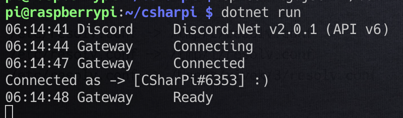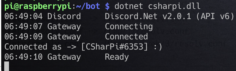 To get this working on our Raspberry Pi we will simply need to push the updated code to the Github repo, and pull it down to the Pi. We will need to update our config.json on the Pi, and copy it to the debug folder, as well as the bot folder (after we’ve added the Prefix line). If you’d like more information on getting the initial setup done with the Raspberry Pi, visit the below post and check out it’s prerequisites as well!