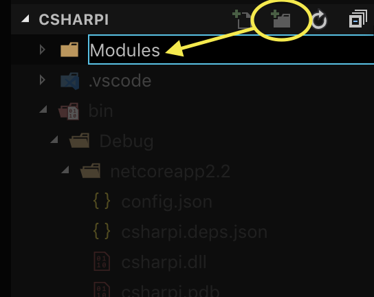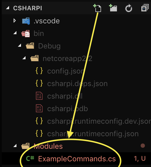 1. Create a folder named Modules, and under that folder a file named ExampleCommands.cs.