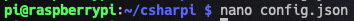 Now that we have the latest code on the Pi (refresher here if you’re using your own repo), let’s edit the config.json file to add the command prefix we want to use.