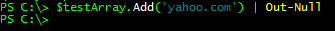 Arrays in PowerShell always start with 0, and when we use the .Add method on this array you can see it outputs the index of the element(value) we are adding. To add an element without seeing that, simply pipe $testArray.Add('yahoo.com') to Out-Null.