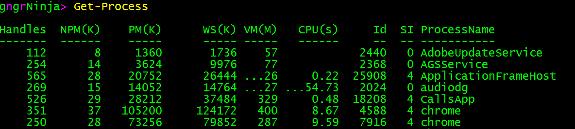 One of the handy things you can do with Get-Process is pipe it to Stop-Process. Just don't do this without specifying a process name, or you will very likely end up causing your computer to reboot!