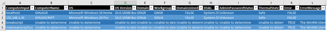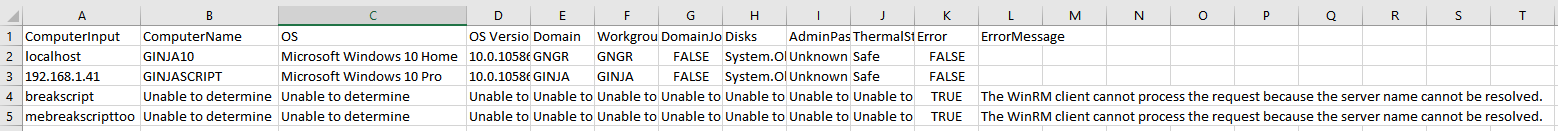 You have a list of computers that you need to get information from. You want to capture any error messages that may come up. You also would like to capture what the computer name in the file was (which we will as ComputerInput), as well as the computer name returned when querying for information. We'll also want to gather the operating system and disk information.