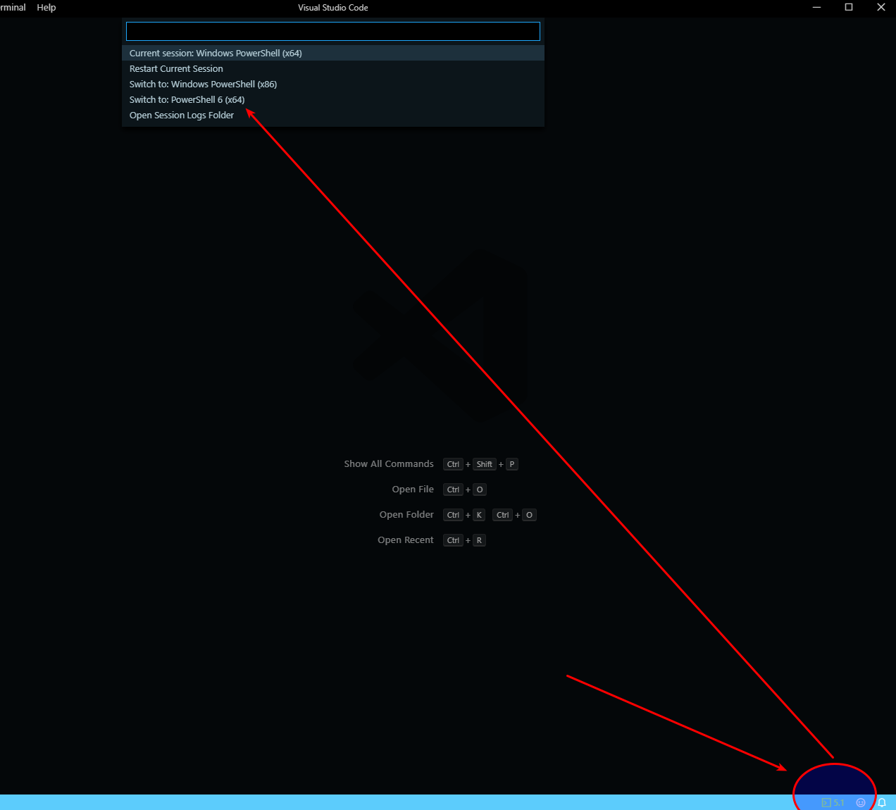 You can use the same steps to switch back to other versions of PowerShell. If for some reason you do not see the icon in the lower right-hand corner, fret not, it should appear after the next section.
