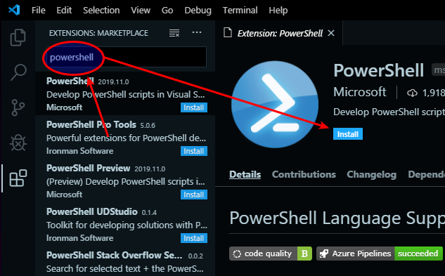 The first extension we will install is the PowerShell extension.
