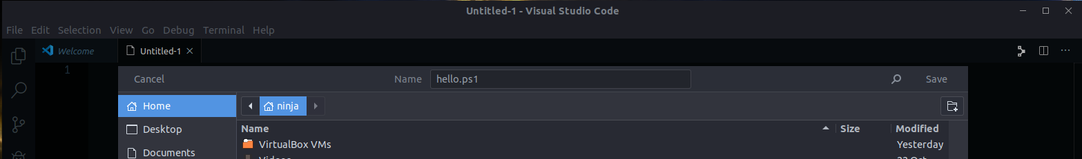 Save the file as hello.ps1, wherever you’d like.